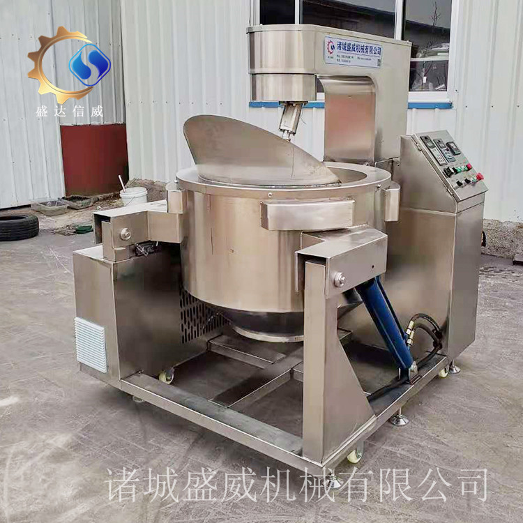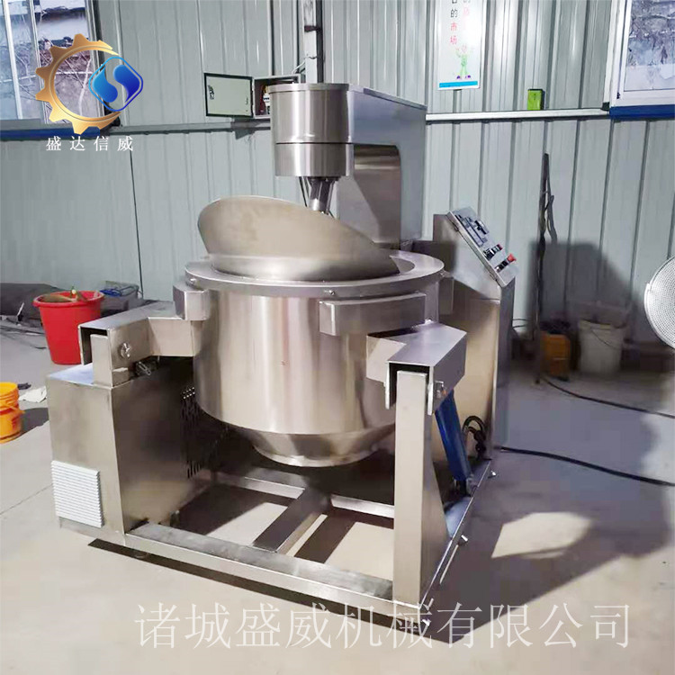 本机吸收借鉴国际先进技术,结合众多食品厂家的专家建议,自主研发的一种新型双向刮底搅拌夹层锅,本锅体搅拌部分采用一次性成型的不锈钢锅体,保证了锅体的平衡光滑,采用蒸汽、液化气、天然气等加热方式,刮边采用弹簧式,刮底采用自重式,使锅体与搅拌叶片紧密接触,使物料搅拌均匀,不粘锅,动力采用日本无机调速器与涡轮、蜗杆,减速机的完美结合,传动部分公转自转的不整数传动比,使锅内搅拌无死角,使用先进的传动与密封结构,使传动部位与锅内洁净、卫生,本机采用液压式翻臂,翻锅出料,省力、省时、省工、不失为性能优良的生产设备。