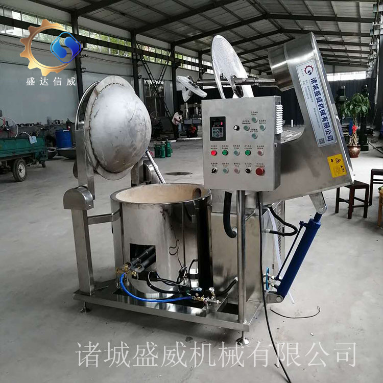 本机吸收借鉴国际先进技术,结合众多食品厂家的专家建议,自主研发的一种新型双向刮底搅拌夹层锅,本锅体搅拌部分采用一次性成型的不锈钢锅体,保证了锅体的平衡光滑,采用蒸汽、液化气、天然气等加热方式,刮边采用弹簧式,刮底采用自重式,使锅体与搅拌叶片紧密接触,使物料搅拌均匀,不粘锅,动力采用日本无机调速器与涡轮、蜗杆,减速机的完美结合,传动部分公转自转的不整数传动比,使锅内搅拌无死角,使用先进的传动与密封结构,使传动部位与锅内洁净、卫生,本机采用液压式翻臂,翻锅出料,省力、省时、省工、不失为性能优良的生产设备。