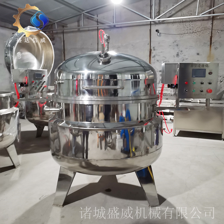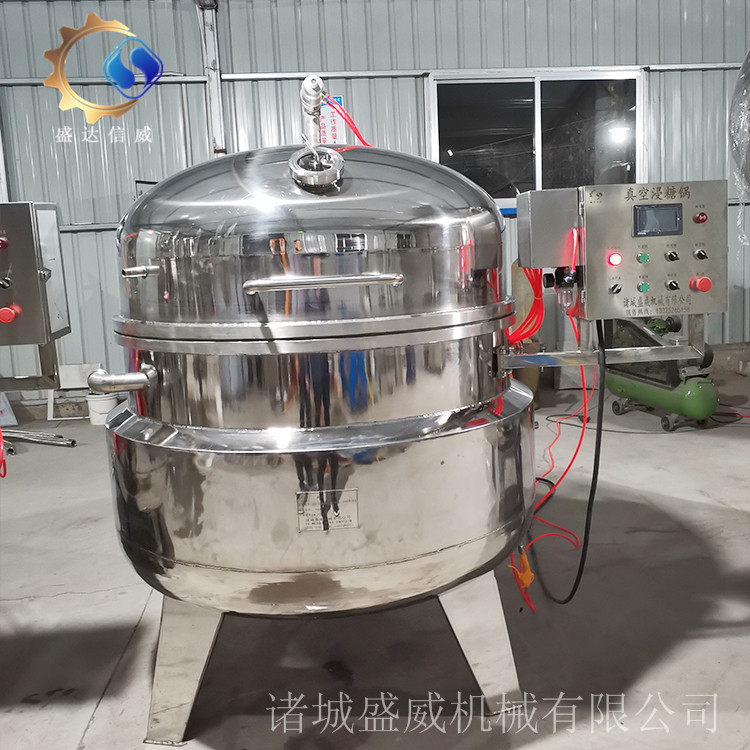 空浸糖锅又名真空糖渍锅,适用于各种蜜饯、水果浸糖、酱菜迅速腌渍。如:大枣、蜜枣、山楂、蓝莓、草莓、苹果、梨、桃子 等迅速浸糖;