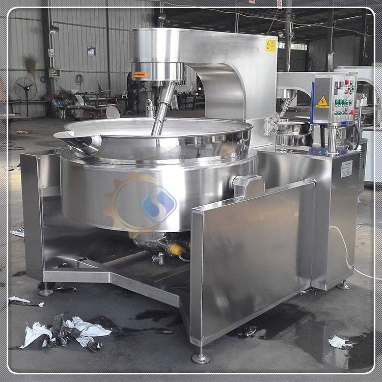 5、搅拌方式:搅拌方式采用特殊的倾斜式传动,使用的行星式搅拌器与锅体充分接触。搅拌系统采用自转公转相结合的方式,其传动比为不整数传动比,保证锅内无搅拌盲点。