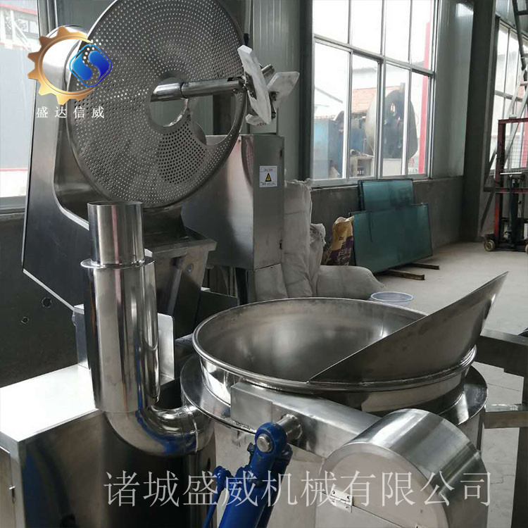 本机吸收借鉴国际先进技术,结合众多食品厂家的专家建议,自主研发的一种新型双向刮底搅拌夹层锅,本锅体搅拌部分采用一次性成型的不锈钢锅体,保证了锅体的平衡光滑,采用蒸汽、液化气、天然气等加热方式,刮边采用弹簧式,刮底采用自重式,使锅体与搅拌叶片紧密接触,使物料搅拌均匀,不粘锅,动力采用日本无机调速器与涡轮、蜗杆,减速机的完美结合,传动部分公转自转的不整数传动比,使锅内搅拌无死角,使用先进的传动与密封结构,使传动部位与锅内洁净、卫生,本机采用液压式翻臂,翻锅出料,省力、省时、省工、不失为性能优良的生产设备。